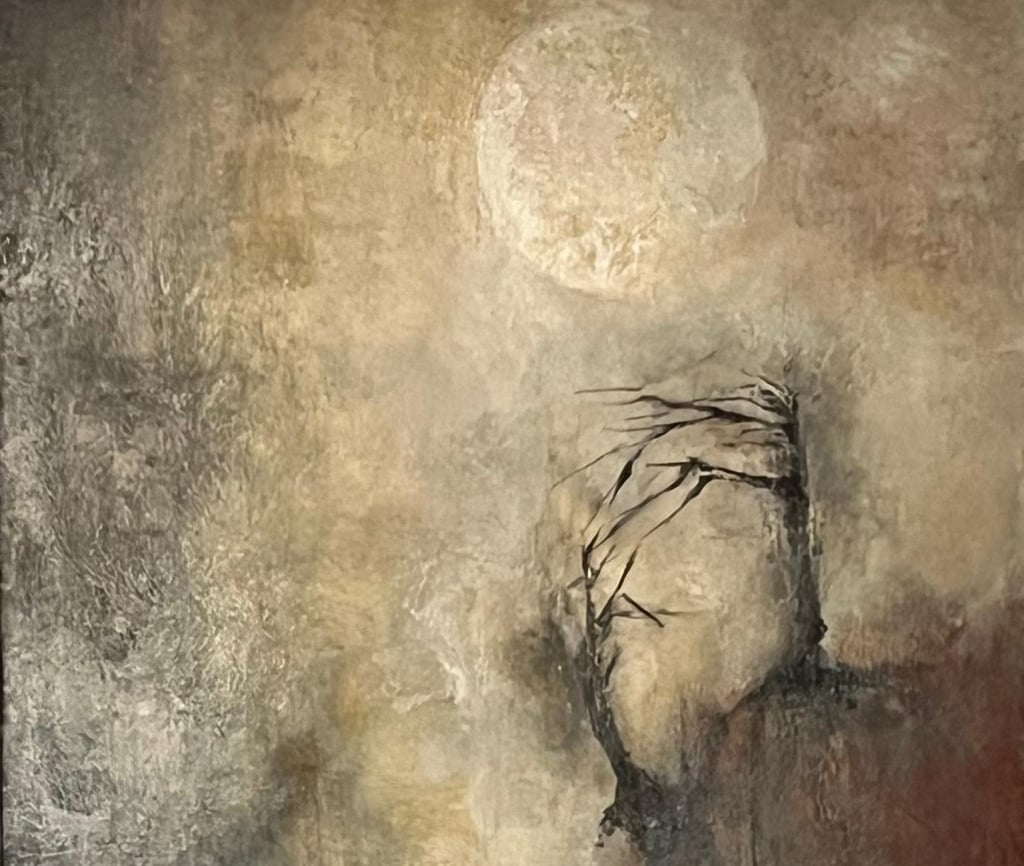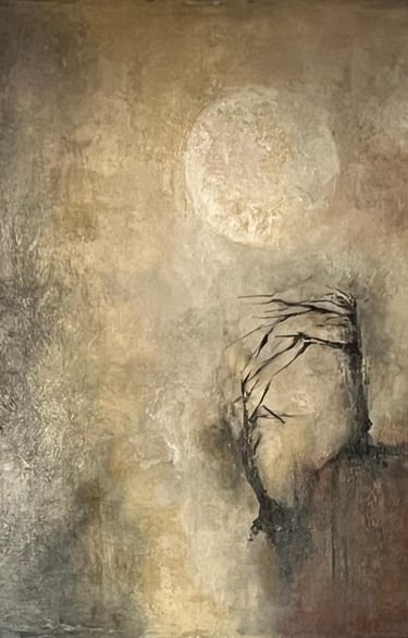 ביצירה השנייה שבחרתי להציג מופיעים עצים המתארכים ונמשכים אל הירח, מקור של אור, השראה ותקווה. הציור הזה מדבר אליי באופן עמוק משום שהוא מבטא את האמונה שלי שחיים, על אף הקשיים, מתאפשרים בזכות חיבור משותף, בזכות יחד שמוצא את דרכו לאור ולתקווה.